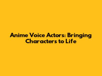 Anime Voice Actors: Bringing Characters To Life