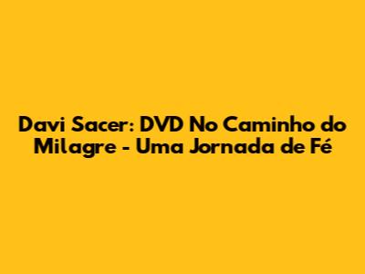 Davi Sacer: DVD 'No Caminho Do Milagre' - Uma Jornada De Fé