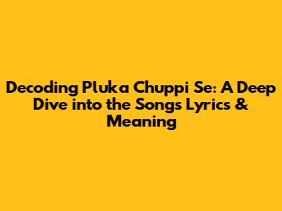 Decoding 'Pluka Chuppi Se': A Deep Dive Into The Song's Lyrics & Meaning