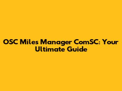 OSC Miles Manager ComSC: Your Ultimate Guide