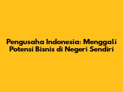 Menjadi pengusaha Indonesia yang sukses membutuhkan kerja keras, ketekunan, dan strategi yang tepat. Anda harus memiliki visi yang jelas, rencana bisnis yang matang, dan kemampuan untuk beradaptasi dengan perubahan. Jangan takut untuk mencoba hal-hal baru dan berani mengambil risiko. Manfaatkan peluang usaha yang ada di Indonesia. Teruslah belajar dan mengembangkan diri. Bangun jaringan yang kuat dan jalinlah hubungan baik dengan sesama pelaku bisnis. Dengan semangat juang yang tinggi dan strategi yang tepat, Anda bisa meraih sukses bisnis dan memberikan kontribusi bagi perekonomian Indonesia. Selamat berjuang, pengusaha Indonesia!