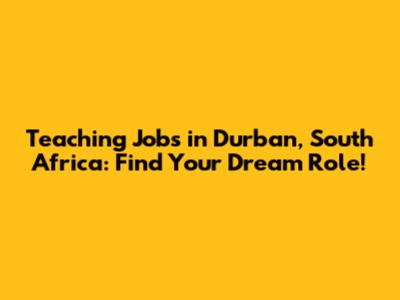Teaching Jobs: Durban, South Africa - Find Your Dream Role!